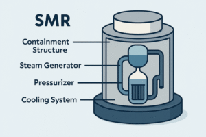 SMRs are compact nuclear fission power plants that typically generate up to 300 MW per module, with designs allowing factory fabrication, modular deployment, and phased scaling.