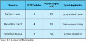 Unlike traditional large plants, SMRs can (1) be installed incrementally, (2) provide dependable baseload power for mission-critical loads, and (3) reduce dependence on external grids, a key advantage for data centers seeking resilience.